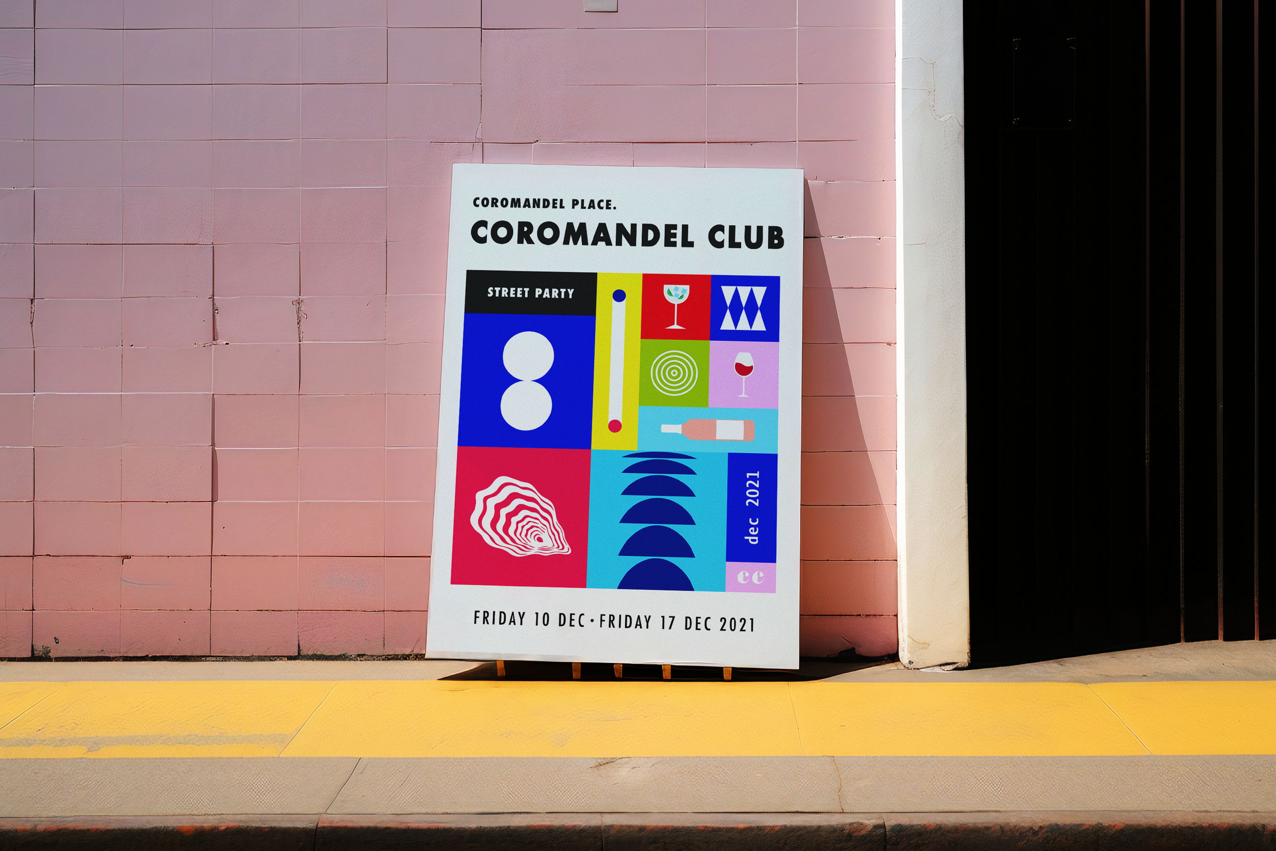 WORK A STUDIO COROMANDEL CLUB ↳ GRAPHIC DESIGN Branding and poster design for a two day street party celebrating all things that represent South Aus. Illustrations of The Malls Balls, Oysters, Wine and Gin. MORE PROJECTS → HERE ← MORE PROJECTS → HERE ← MORE PROJECTS → HERE ←