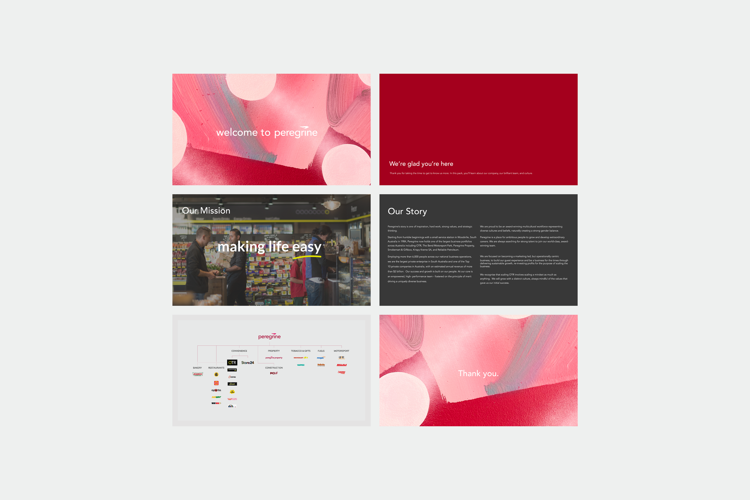 In 2022, Peregrine Corporation underwent a comprehensive rebranding initiative that produced a new logo and brand identity with a softer, modern, and approachable aesthetic. As a key contributor to the project, I worked in close collaboration with the Head of Brand to oversee the execution of the rebranding throughout the company's various channels. Additionally, the rebranding showcases the artwork from a mural painted on the building across various assets.